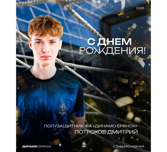 Сегодня свой День рождения отмечает полузащитник ФА "Динамо-Брянск" Дмитрий Потрохов!Дима, в этот день мы желаем