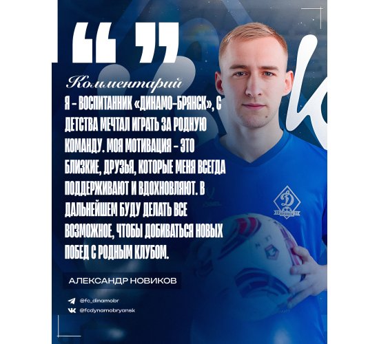 Один из ключевых игроков сине-белых, воспитанник клуба, полузащитник Александр Новиков рассказал о прошедшем Пер
