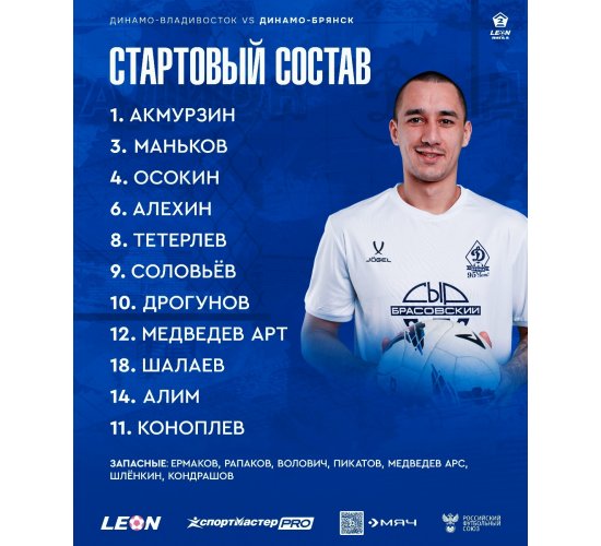 Сегодня День рождения отмечает полузащитник "Динамо-Брянск" Лев Алим! Мы желаем нашему молодому игроку успехов в карь