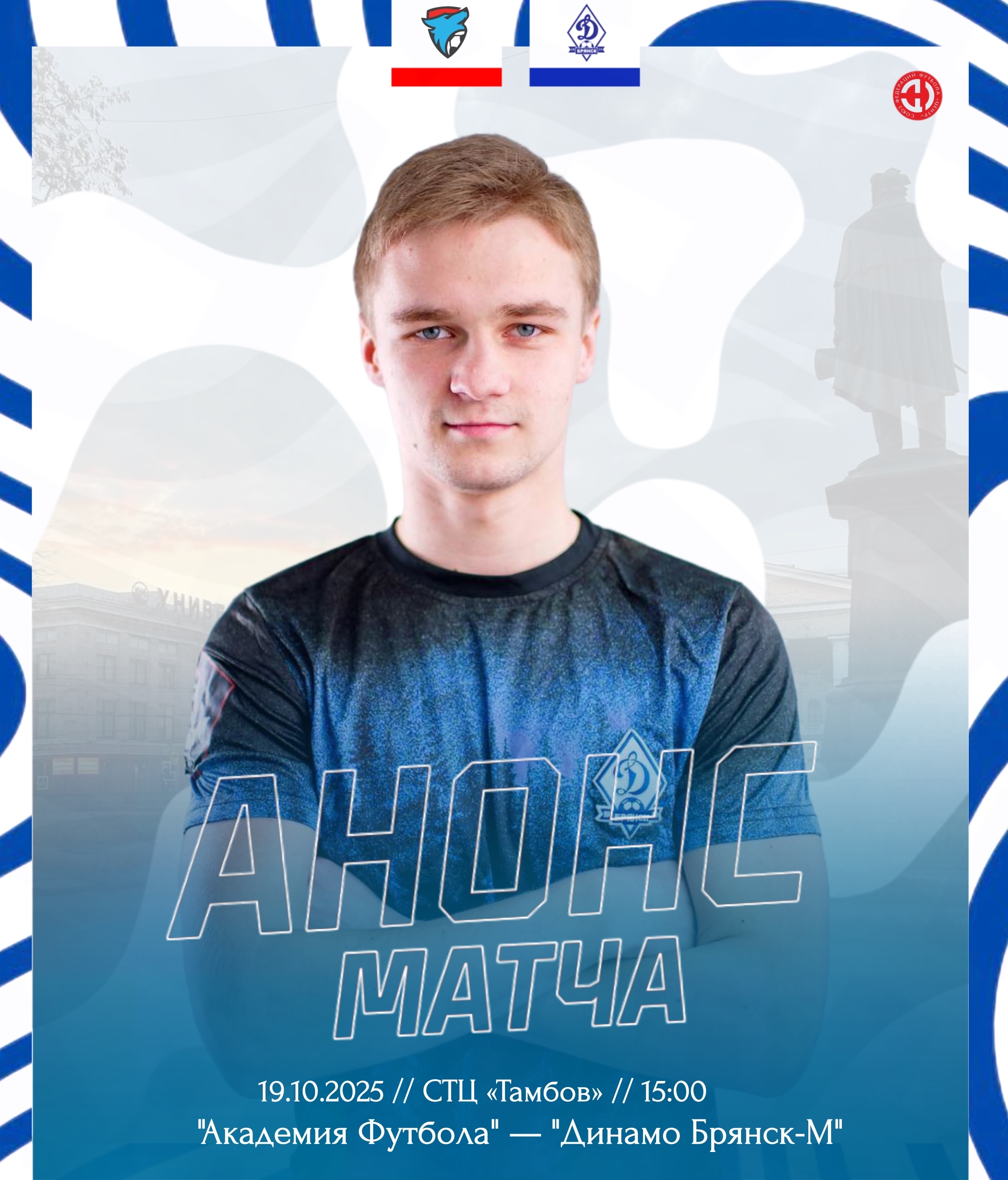 Наша молодежная команда в это воскресенье, 19 октября, проведёт свой гостевой матч 9 тура Второго этапа Первенства СФФ Центр. Динамовцы сыграют против «Академии Футбола» из Тамбова.