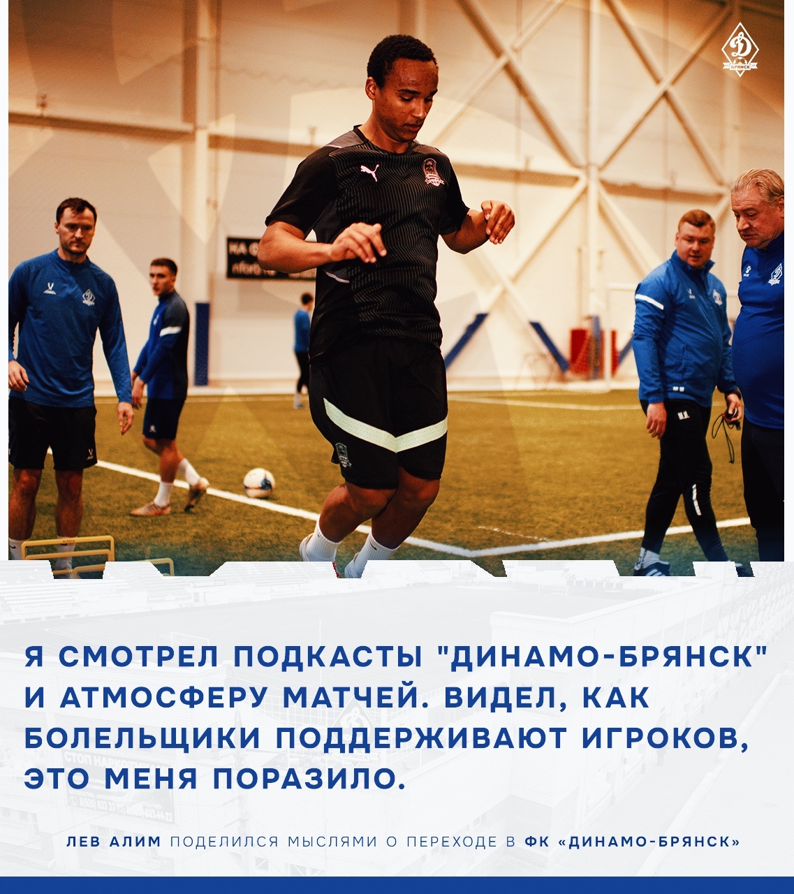 - Вы хорошо подметили. Я смотрел подкасты "Динамо-Брянск" и атмосферу матчей. Видел, как болельщики поддерживают игроков, это меня поразило. Это не может не радовать. В новом сезоне хочется, чтобы зрители на трибунах вели нас вперёд, ведь это очень важно для футболистов. Обязательно будем радовать голами и победами. От себя хочу добавить, что буду стараться принести как можно больше пользы команде и результативных действий.
