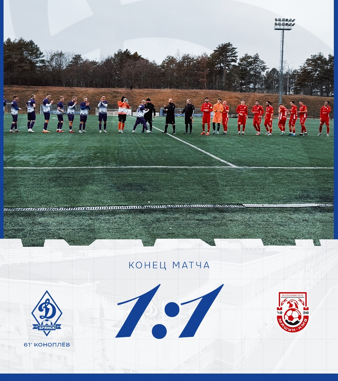 8 февраля наша команда встречалась с пятигорским "Машуком-КМВ" в рамках заключительного товарищеского матча на сборах в Кисловодске. Свисток по окончании 90 минут игры зафиксировал ничью 1:1. Единственный гол в составе нашей команды забил Даниил Коноплёв.