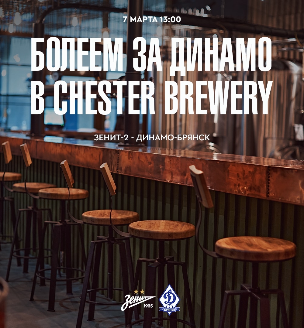Уже в эту субботу, 7-го марта, мы снова соберемся в пивоварне Chester Brewery. На экранах ресторана будет показана прямая трансляция второго матча динамовцев в новом сезоне Первенства Второй лиги А.