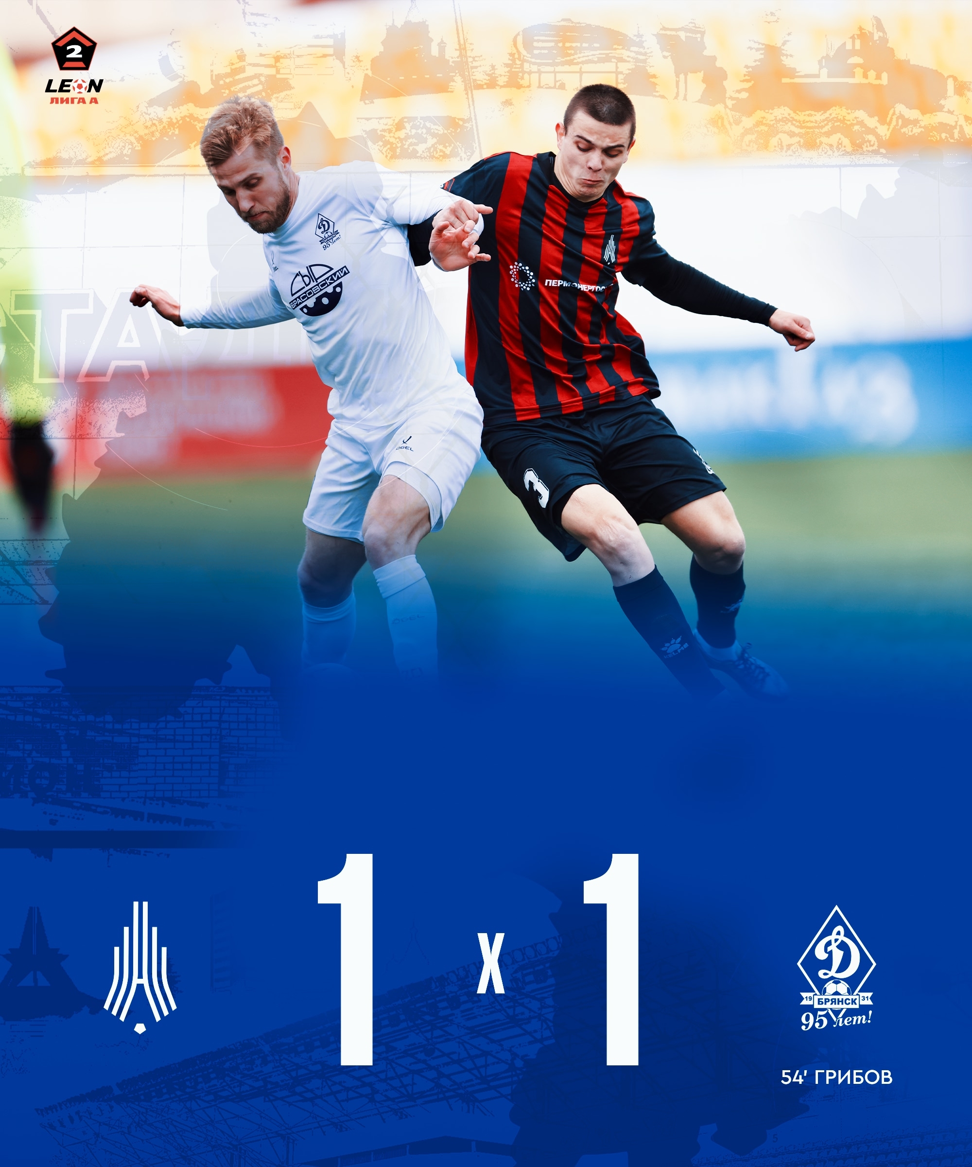 Игра в Перми завершилась со счетом 1:1. Единственный гол в составе нашей команды забил Сергей Грибов.