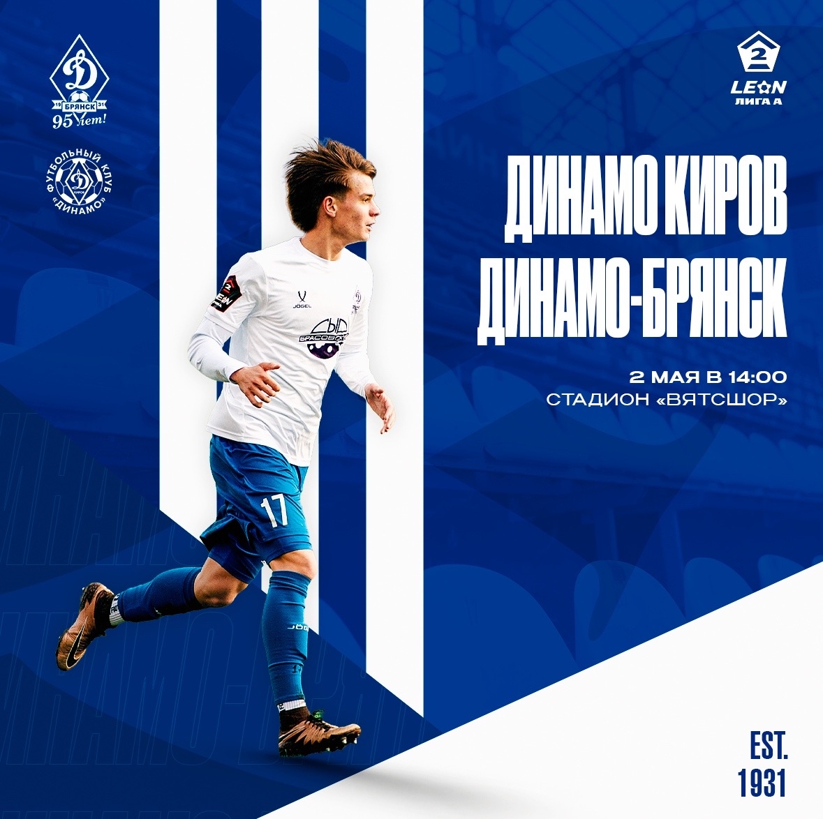 В субботу 2 мая наша команда проведет матч 11-го тура LEON-Второй лиги А. Подопечные Андрея Канчельскиса в гостях сразятся против «Динамо» из Кирова.