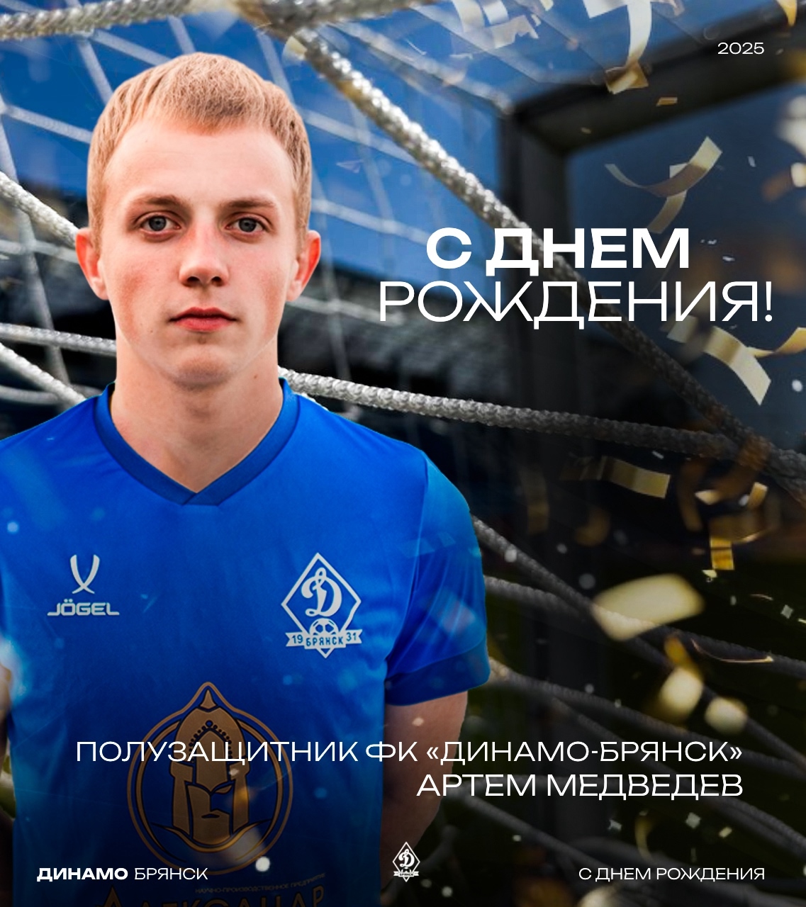 Сегодня свой День рождения отмечает наш воспитанник, полузащитник «Динамо-Брянск» - Артём Медведев!